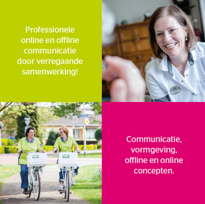 Samen met mijn netwerkpartners Syveon Internet Solutions en Proud heb ik het ‘Zorgconcept’ ontwikkeld. Door een intensieve samenwerking hebben wij met elkaar een prachtig totaalpakket te bieden: van communicatie tot vormgeving, tot offline en online concepten! Inmiddels hebben we voor meerdere zorgcentra bijzonder fraaie opdrachten gerealiseerd. Ons ‘Zorgconcept’ is eigenlijk niets nieuws. Wij werken al jaren op deze manier samen. Daarom zijn we ook helemaal op elkaar ingespeeld. Maar ook wij willen onze doelgroep bereiken en hebben aan onze samenwerking een naam gegeven en een mooie flyer ontwikkeld.